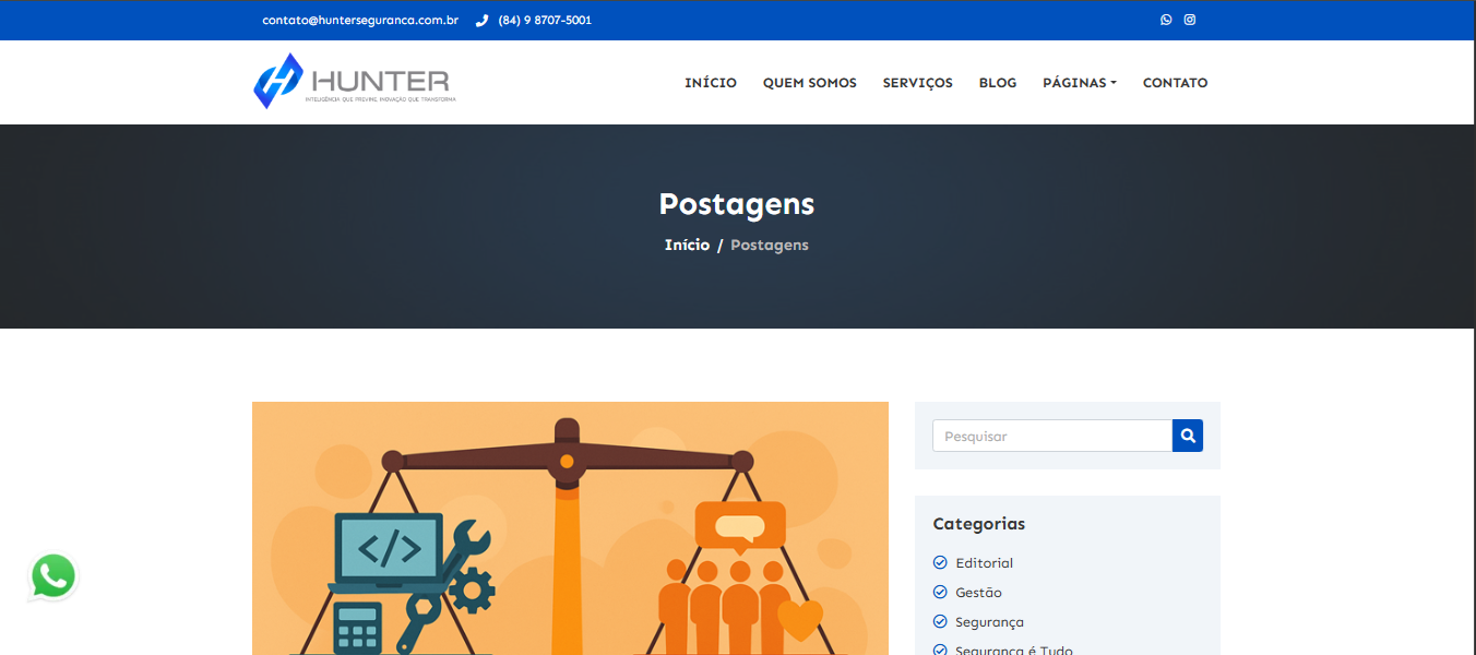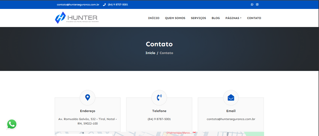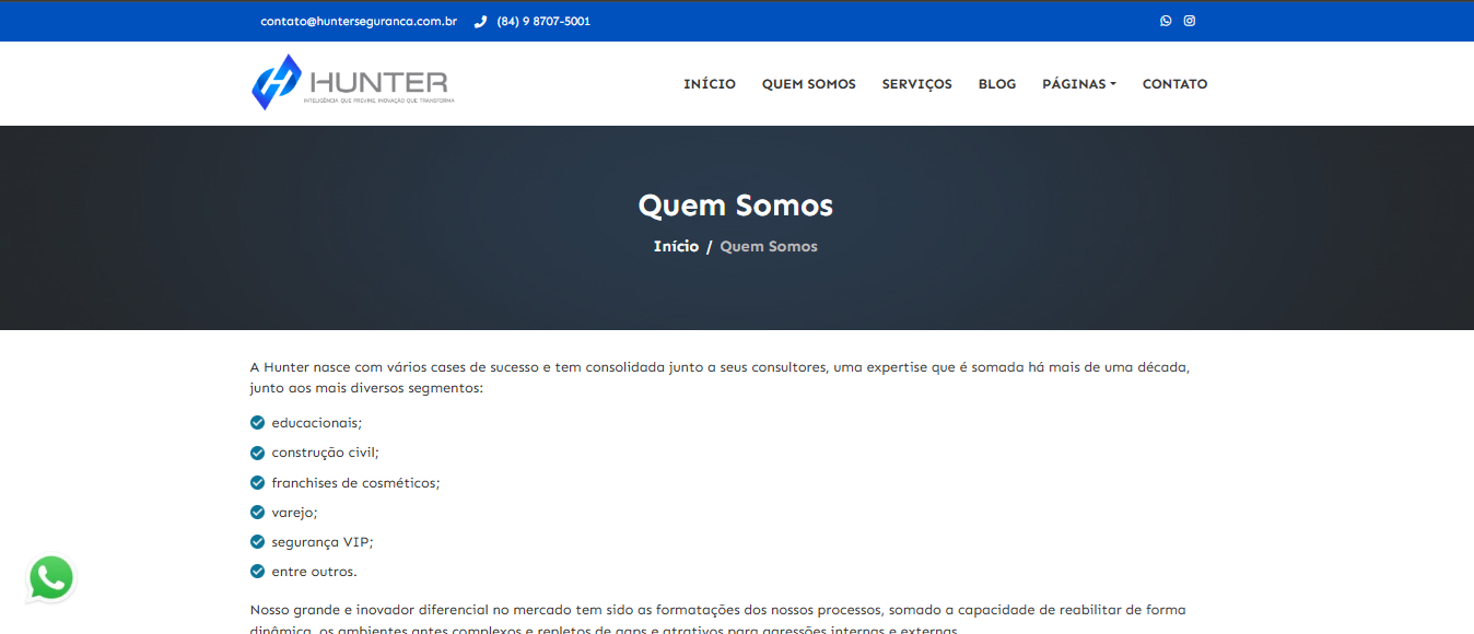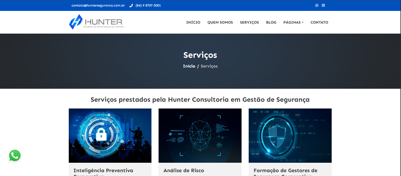 Com isso, entregamos um site que não apenas fortalece a presença digital da Hunter, mas também transmite confiança e profissionalismo ao seu público-alvo.