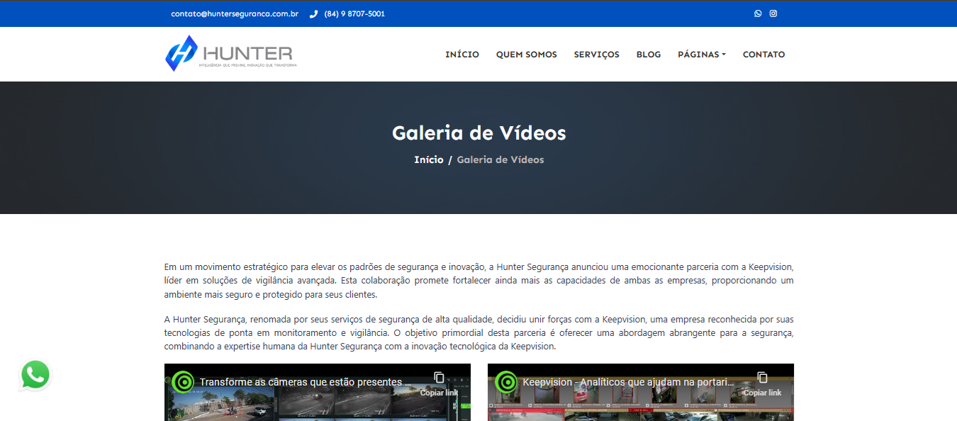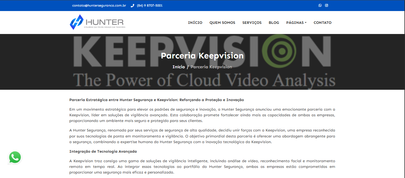 - Página de parcerias estratégicas, como a Keepvision, com foco em tecnologia e monitoramento;